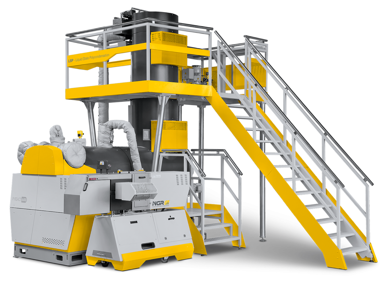 Реакторы жидкофазной поликонденсации (Liquid State Polycondensation) меняют привычные шаблоны переработки вторичного ПЭТ. Они превращают отходы ПЭТ (волокна, нити, пусковые слитки и т.д.), также как бутылочные и "небутылочные" хлопья (флексы) в пищевой ПЭТ за считанные минуты.